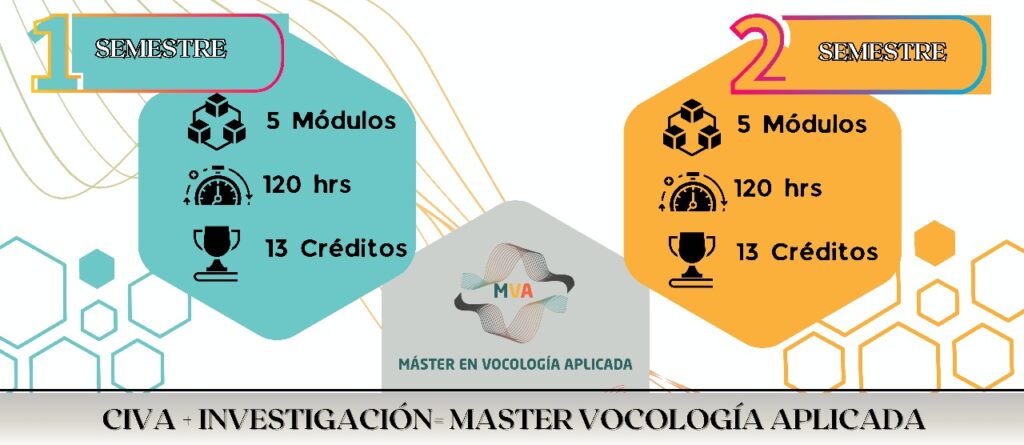 El pensum académico de la Certificación Internacional en Vocología Aplicada integra 2 semestres, 10 módulos y mas de 220 horas de formación online con aval universitario. Adicional integra la investigacion a tu programa y certificate por el centro de investigacion como Master en Vocología Aplidaca.
